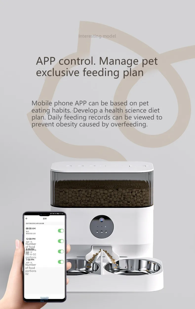 6. Mobile phone remote feeding: mobile phone control, manual feeding 1 serving each time, instant feeding