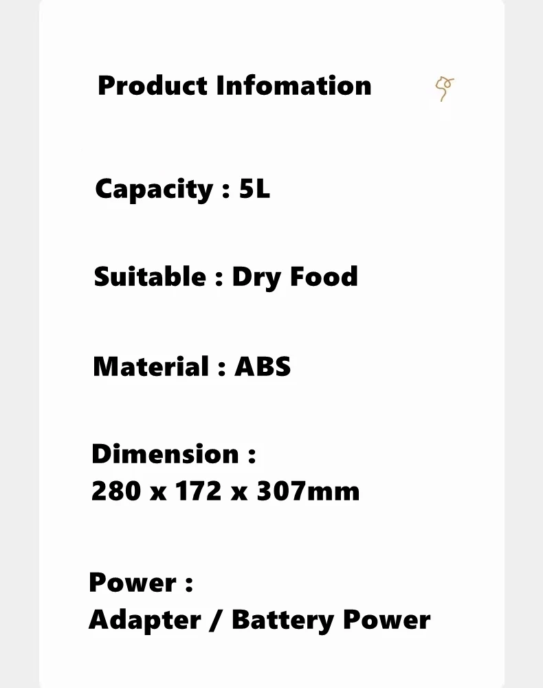 Suitable pet food: dry pet food (recommended diameter is 3-13mm)